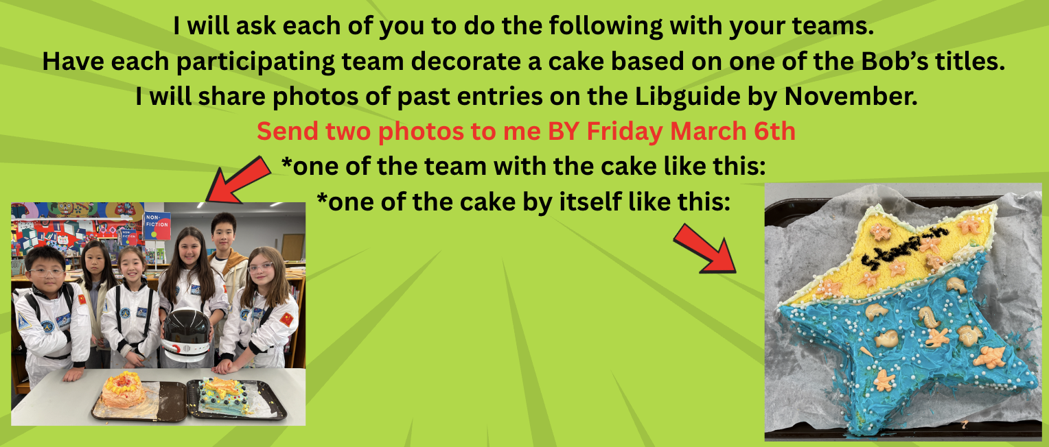 *Tomorrow is our first Kahoot Quiz. The students come during their lunch recess as a team, we give each team an Ipad, and do a practice round Kahoot on one of the 8 BOB's books. We don't score the rounds, they are just for practice. The students don't know which book we are doing until the Kahoot loads.